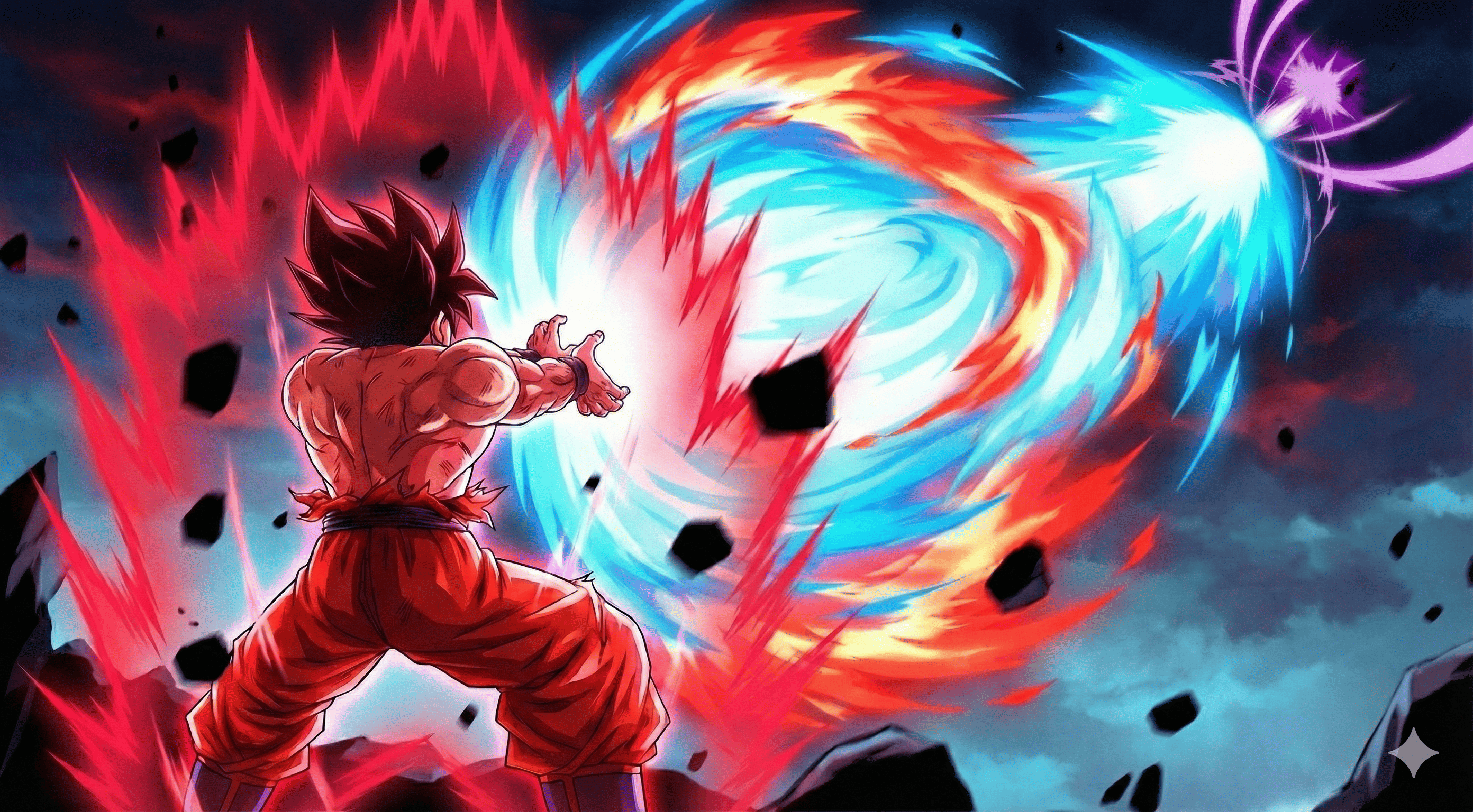 En aquel momento crítico para Gokú (y con miles de telespectadores junto a la TV, que confiaban en él el destino del planeta y que le habían dicho a su mamá que ya habían lavado la loza), ¡activó por primera vez esta técnica para amplificar su poder base! Es decir, su poder base se multiplicó: primero a 2x, luego a 3x y finalmente ¡a 4x!